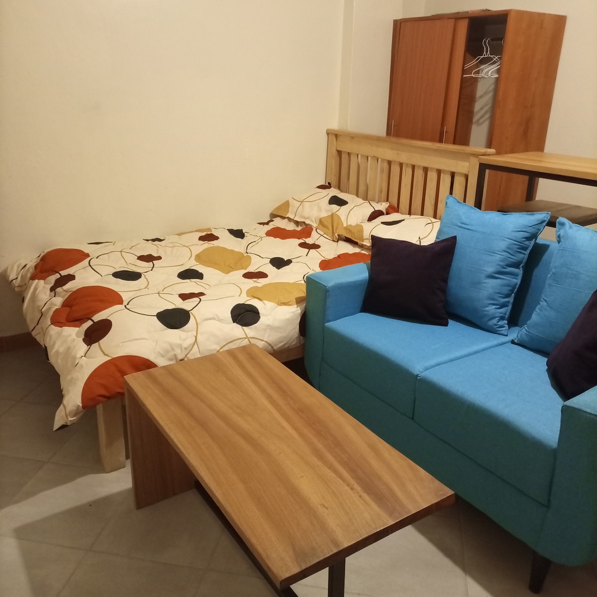 The studio is a compact, detached unit in a shared compound with our family homes. At 140 sq ft (13 sqm), it includes a cozy 4x6 bed, a foldable table with a stool, and a floor pillow (no room for a couch). A comfortable outdoor chair is provided for enjoying sunshine and fresh air.