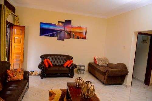 Featuring a garden, Aster Homes offers accommodations in Kampala. This property offers access to a terrace and free private parking. The accommodation provides airport transfers, while a car rental service is also available. With free Wifi, this 3-bedroom apartment features a flat-screen TV, a washing machine, and a fully equipped kitchen with an oven and microwave. Towels and bed linen are available in the apartment. For added privacy, the accommodation has a private entrance and is protected by full-day security. Uganda Golf Club is 3.8 miles from the apartment, while Kampala Wonder World Amusement Park is 3.9 miles from the property. The nearest airport is Entebbe International Airport, 27 miles from Aster Homes.