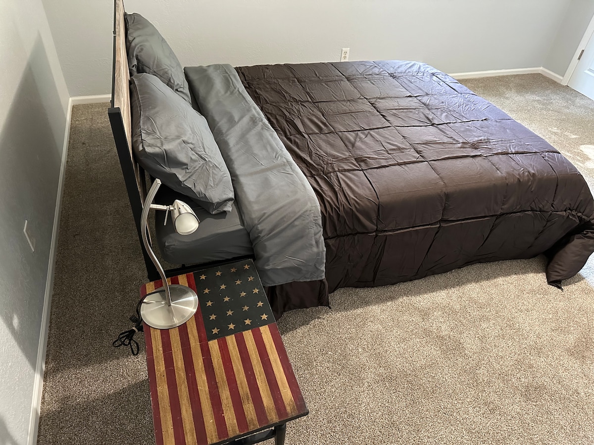 Private room with a queen bed in Overland Park in a quiet neighborhood - less than 3 miles to Overland Park downtown, the Overland Park Convention Center, and just a couple of miles from I-435 access to get everywhere else. Private bathroom is just across the hall.