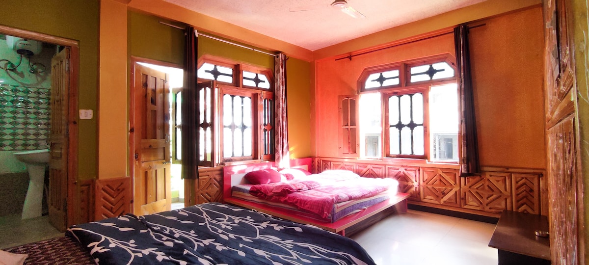 Experience Kasol like a local in this fabulous 10-bedroom hotel. Each bedroom is beautifully furnished with a queen bed, ensuring a comfortable stay for all guests. With 9 bathrooms equipped with showers, there's no need to worry about waiting in line. Whether you're exploring the breathtaking surroundings or simply relaxing in the cozy ambiance, our charming property provides the perfect retreat. Stay connected with WiFi and enjoy the convenience of a washing machine. We look forward to hosting you at our place.