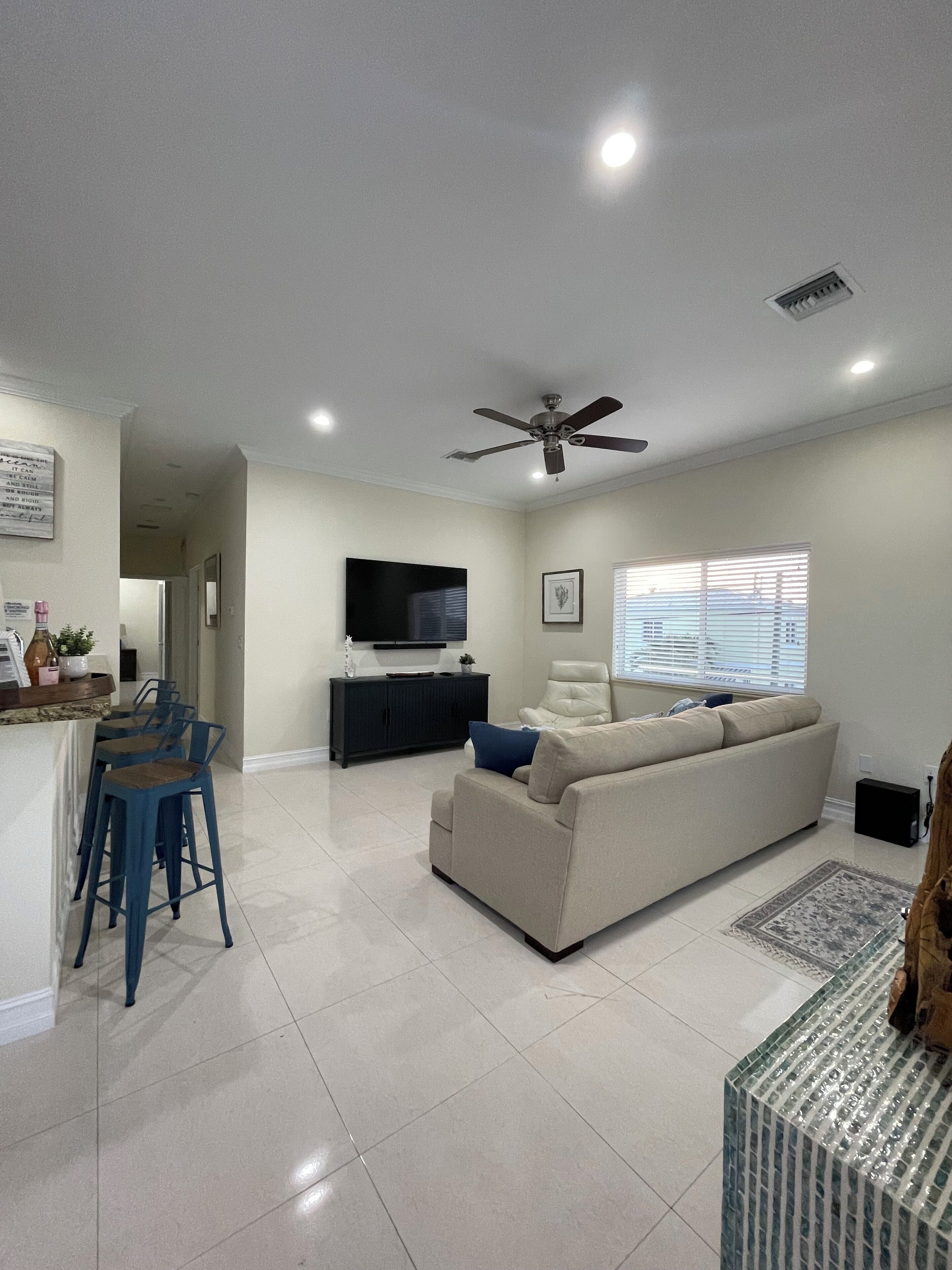 Spacious living room and kitchen . Completely renovated . Beautiful space right down the street from the ocean and a beautiful neighborhood park that is on the water