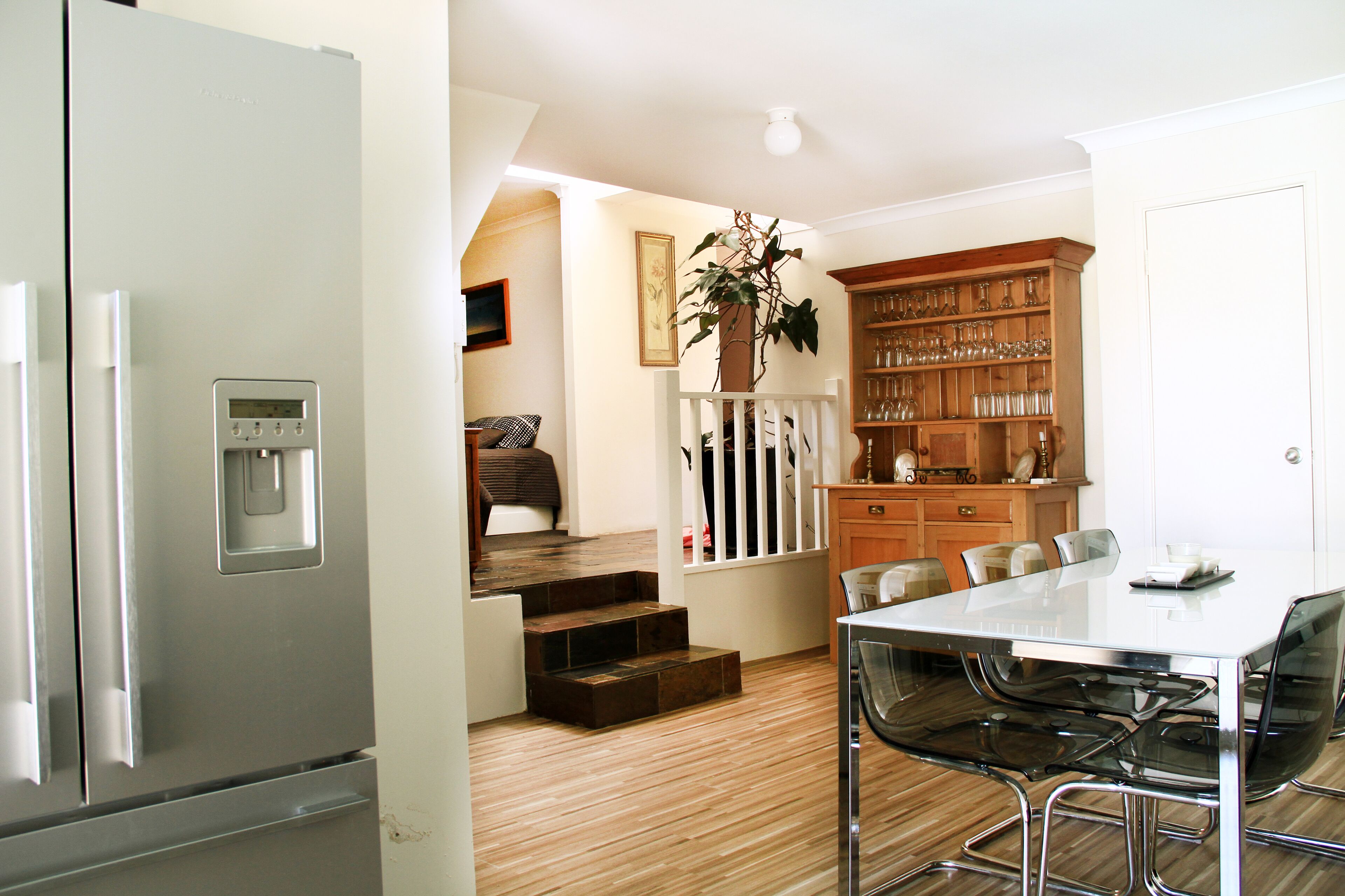 The top floor has an air-conditioned master bedroom with ensuite bathroom and access to a balcony where you can feel the cool afternoon sea breezes or enjoy a drink and watch the beautiful Perth sunsets.
