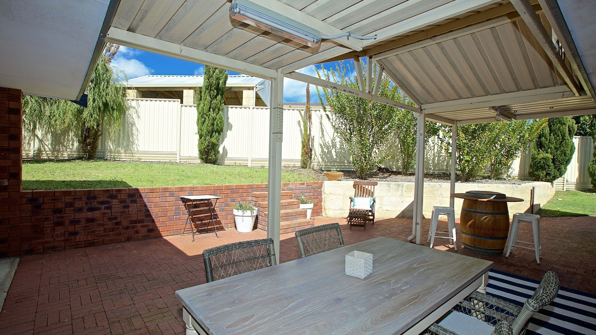 - 3 outdoor entertaining areas ( front garden, back alfresco, bali hut)
