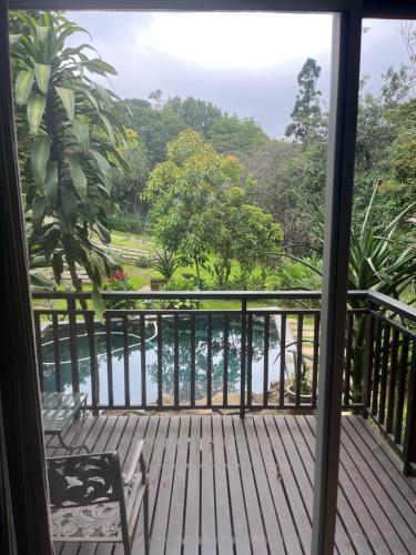 Guests can use the braai patio area with a covered area on a deck that has views of the garden and beautiful pool that you can sit and relax and listen to the nature.