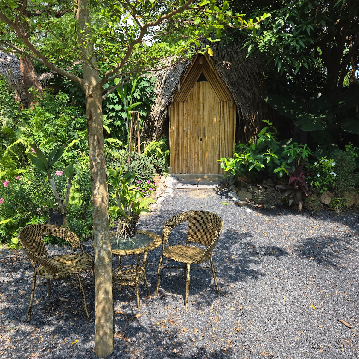 very quiet house , located on a private land in the center of lamai.
