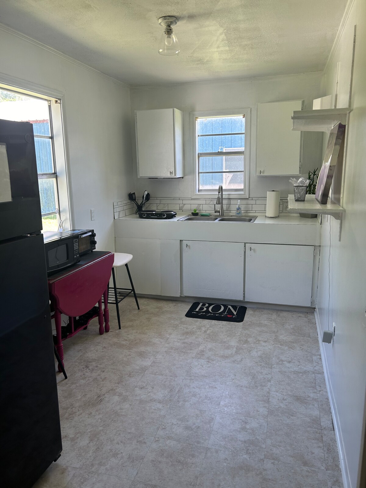 - Kitchen with Microwave, Oven, Refrigerator, Stove;