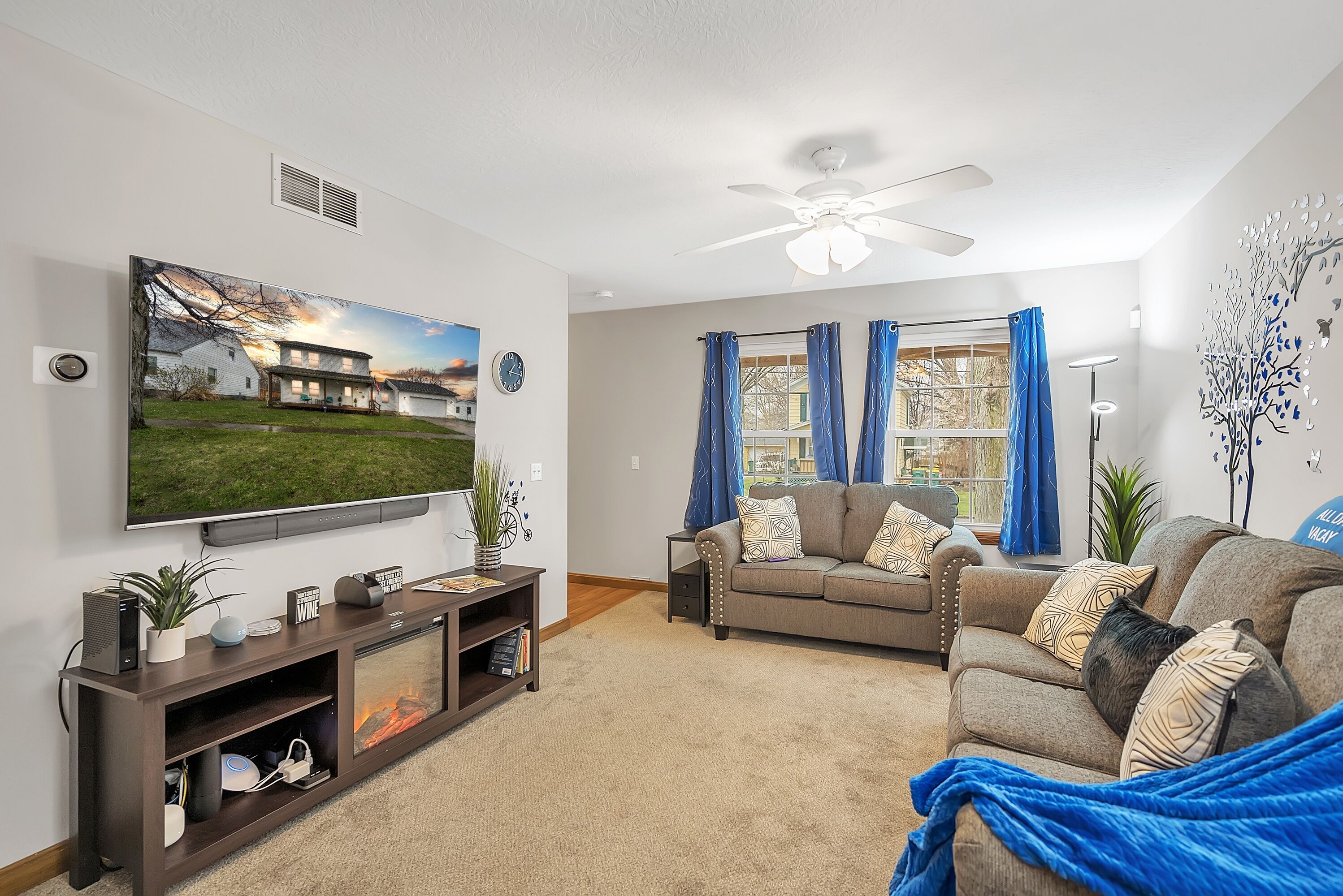 - Stylish living room featuring a 55-inch flat screen, Smart TV to binge your favorite shows