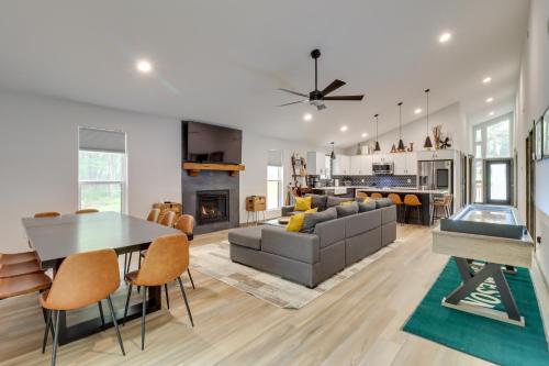 Welcome to The Birch Lodge, a cozy and secluded 5BR cabin nestled in the heart of Lake Harmony just a short 5-minute walk to the lake. Our cabin is located on the border of a 16,000-acre state park, providing the perfect escape to nature for guests of all ages. With a wide range of amenities, including an outdoor fire pit, hot tub, pool table, and arcade games, there's always something to do at The Birch Lodge. You might even spot a deer or two in the backyard!