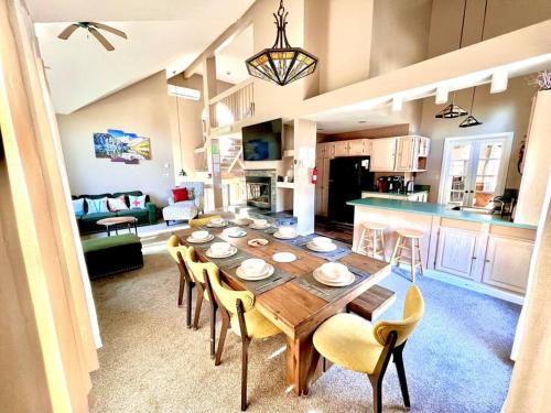 The family room has high vaulted ceilings, a wood burning fireplace, sectional sofa, lots of games for family time, and a smart TV w local cable channels. From the dining area you can access the sliding glass doors to enjoy the rear deck where you can grill, dine or watch the sunset. Facing the Big Boulder Lake, you will be able to see the lake thru the trees at different times of the year.