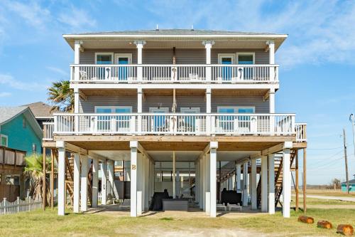 Two Huge Decks & Sandy Sea Views offers accommodations in Freeport, a few steps from San Luis Pass Beach and 14 miles from Galveston Island State Park. Both free Wifi and parking on-site are available at the vacation home free of charge. Outdoor seating is also available at Two Huge Decks & Sandy Sea Views. Offering a patio and sea views, the spacious vacation home includes 4 bedrooms, a living room, TV, an equipped kitchen, and 4 bathrooms with a bath. The accommodation has a fireplace. A water park is available on-site and cycling can be enjoyed close to the accommodation. Schlitterbahn Galveston Island Waterpark is 23 miles from Two Huge Decks & Sandy Sea Views, while Moody Gardens is 23 miles away. William P. Hobby Airport is 62 miles from the property.