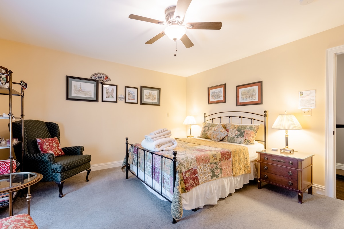 Your room and bathroom is completely private. You'll also have access to a lovely shared living room with a wood-burning fireplace (seasonal) and five acres of property to explore and enjoy. Play a rousing game of pingpong or pool in our game room, roast marshmallows over the nightly bonfire (seasonal) or take a dip in the Ausable River.
