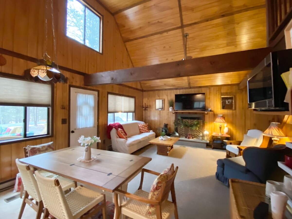 Pocono mountain cabin on beautiful Lake Wallenpaupak in northeast Pennsylvania, fieldstone gas log fireplace, picture window looks down 7 miles of water. Private dock and kayak (May till Mid October), electric heat and a/c, fully furnished including washer and dryer. WiFi is available. Skiing, hiking, and horseback riding nearby. Close to Victorian town of Hawley, PA with restaurants and antique shopping. 'Claws and Paws' zoo in the woods for the kids. Visit our website for more information!