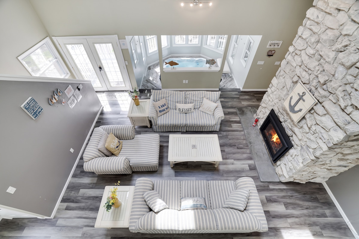 Visit Lake Wallenpaupack and immerse yourself with everything that lake life has to offer. The main floor is perfect for hanging with family and friends. In the winter, enjoy getting cozy by two fireplaces in the home and the new outdoor fire pit! We have a bunch of board games, poker and foosball tables, as well as corn hole. There are plenty of activities nearby: hiking trails, breweries, boat rentals, swimming, skiing, and more!