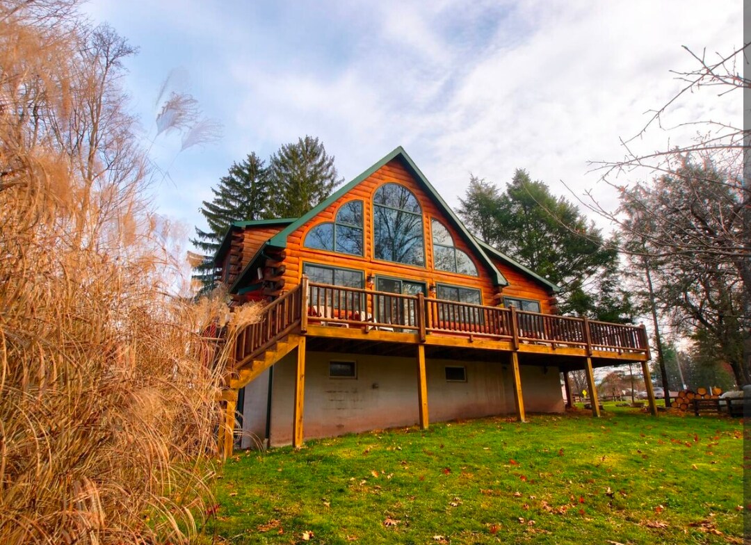 Beautiful lakefront log-home style vacation home with spectacular views, fireplace in a community with two outdoor pools and one indoor pool; it is located on Lake Wallenpaupack in beautiful Lake Ariel, PA which is about 2 hours from New York City. You will look out your windows to beautiful views of the giant lake. Unlike being on a small lake, which doesn't allow powerboats or jet skis, Lake Wallenpaupack is a gigantic power boating lake (15 miles long). BYOB! (bring your own boat) or you can rent pontoon boats, wave runners, and speed boats for the day and park them at your own dock! We accept MasterCard, Visa and Discover cards as payment, but not American Express, sorry.