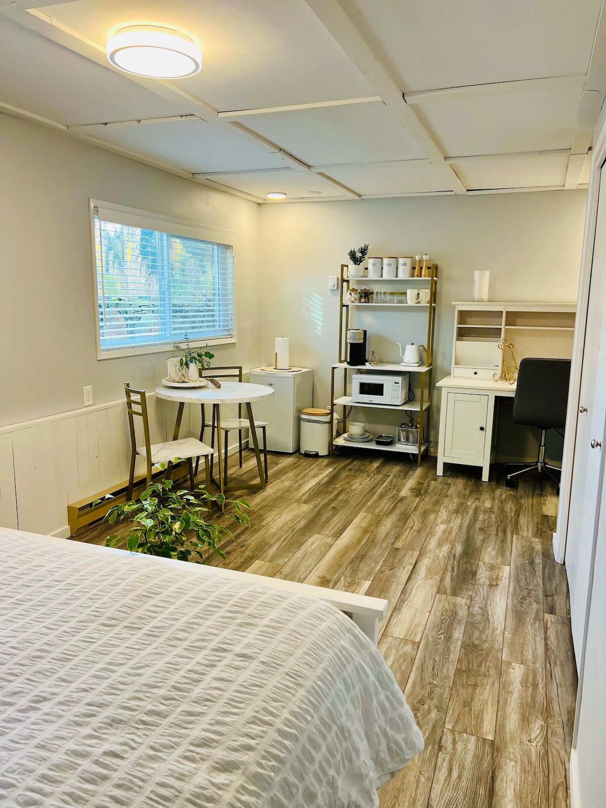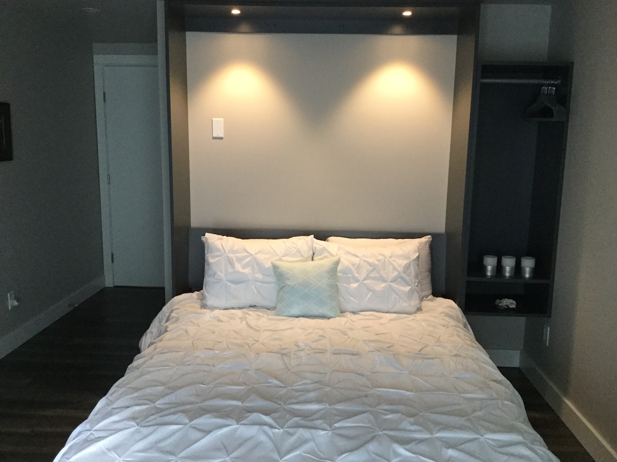 Cozy and stylish brand-new flat near Langford Lake! Located in a family house, this ground-floor unit has a private entrance and features a king-size bed, fully equipped kitchenette (coffee maker, toaster, kettle, rice maker, microwave, fridge), 55” cable TV, high-speed WiFi, and electric heating. Just 10 min by car from Bear Mountain Golf Club and 20 min from Victoria, it’s perfect for a relaxing stay.