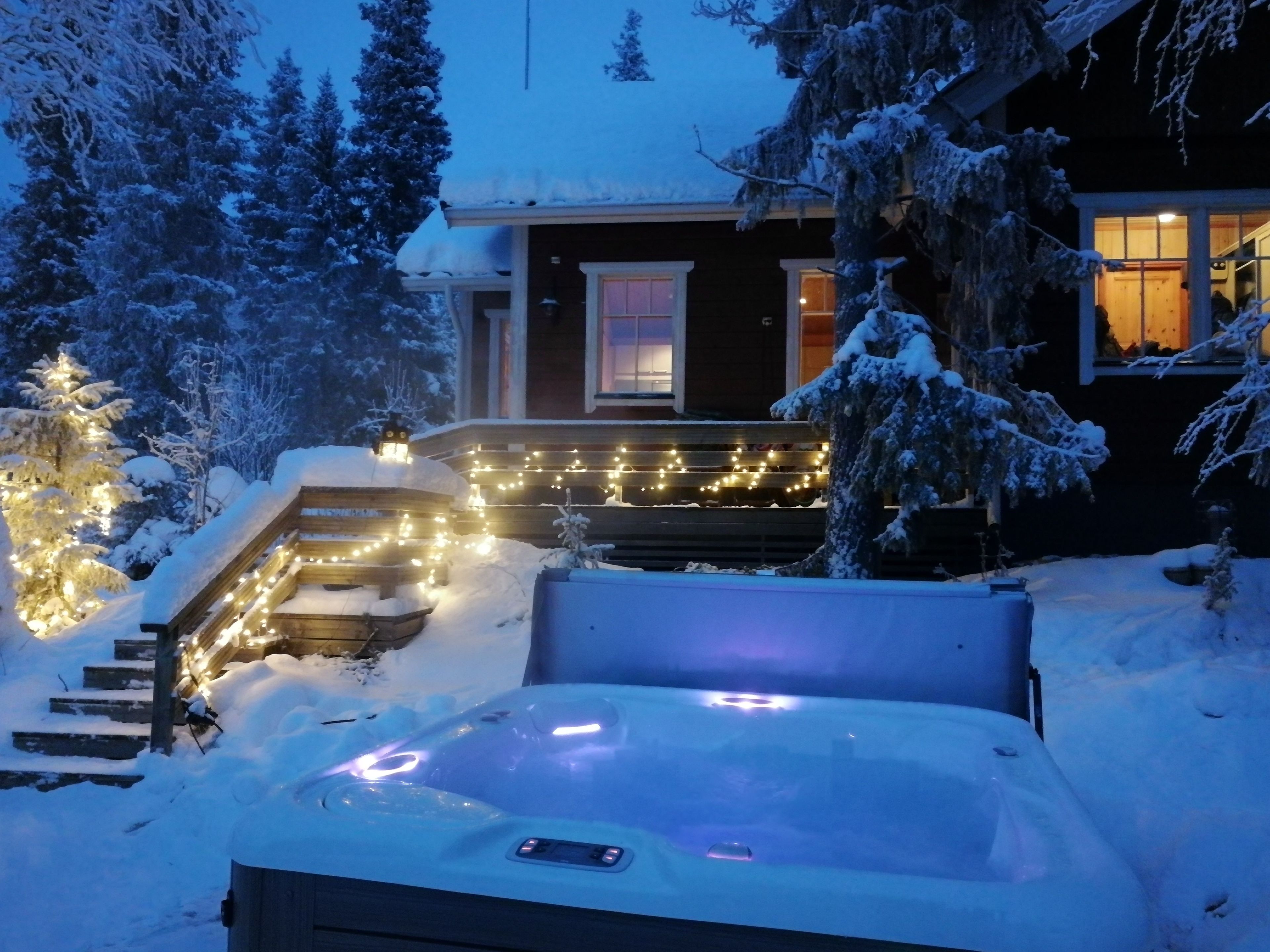 The yard is an ideal place to swim in the snow directly from the sauna.