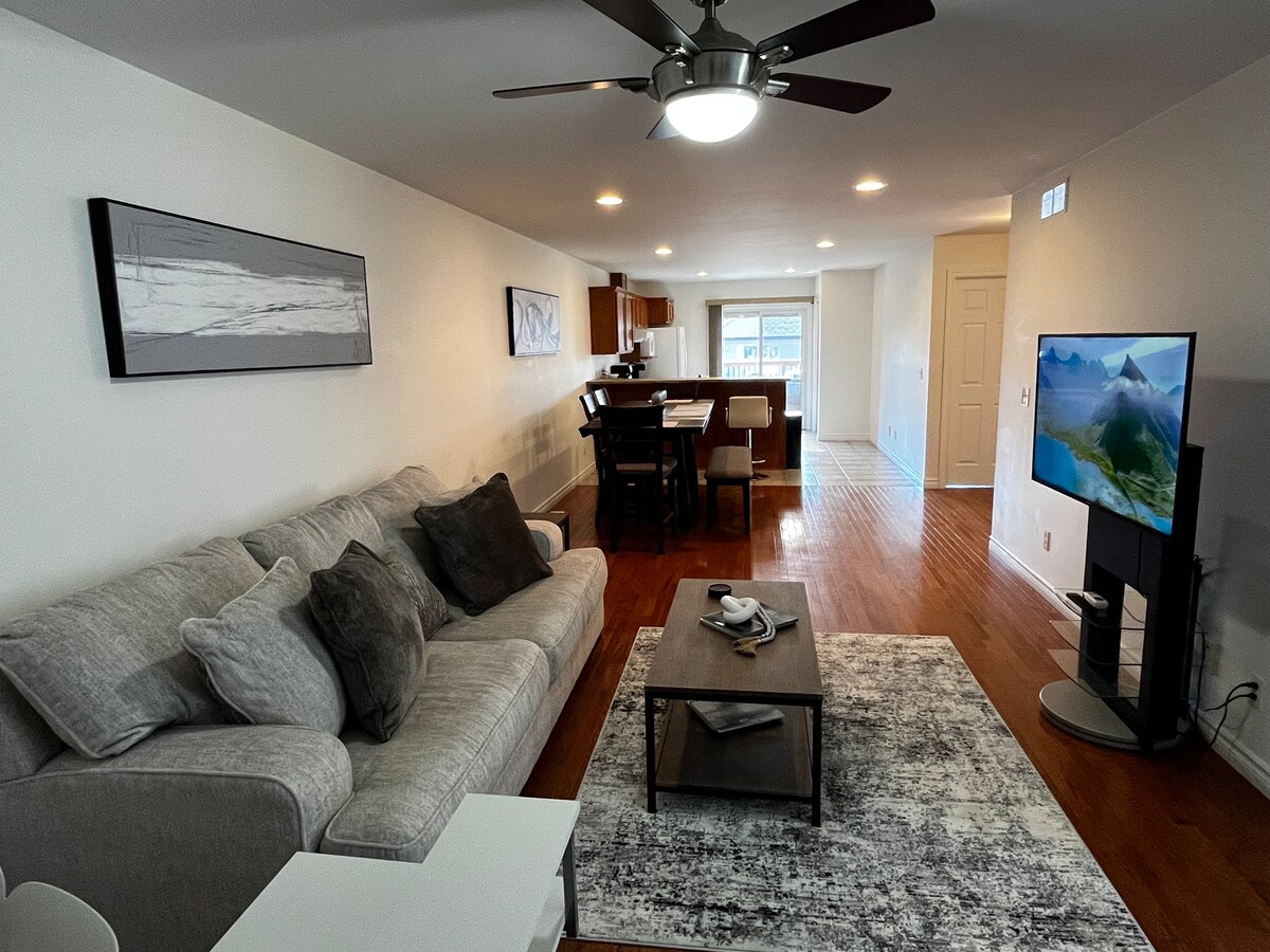 We've created a modern 3 bedroom space to welcome guests. This space has everything you need including coffee on demand and two tastefully set up rooms with Full beds for you to enjoy. The Comfortable living room with internet TV and fast Wi-Fi make the place perfect for you to call home and it has a nice pull out couch, so you have an extra sleeping area.