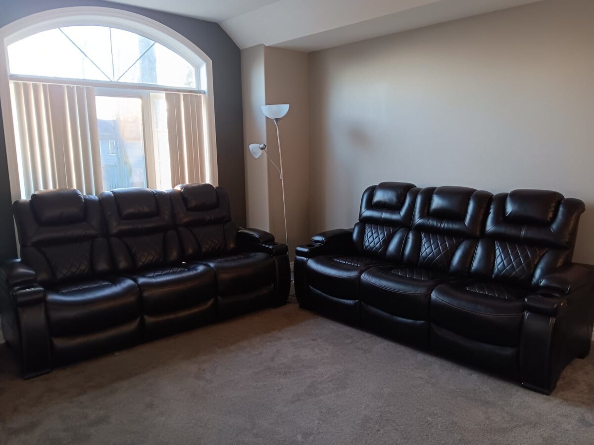 This unit can easily accommodate 6 or more if need be with 3 queen size bed, extra air mattresses provided as well. A brown leather Furniture couch in the living room with Dimplex Fireplace and a 55 inch Television for your entertainment needs.