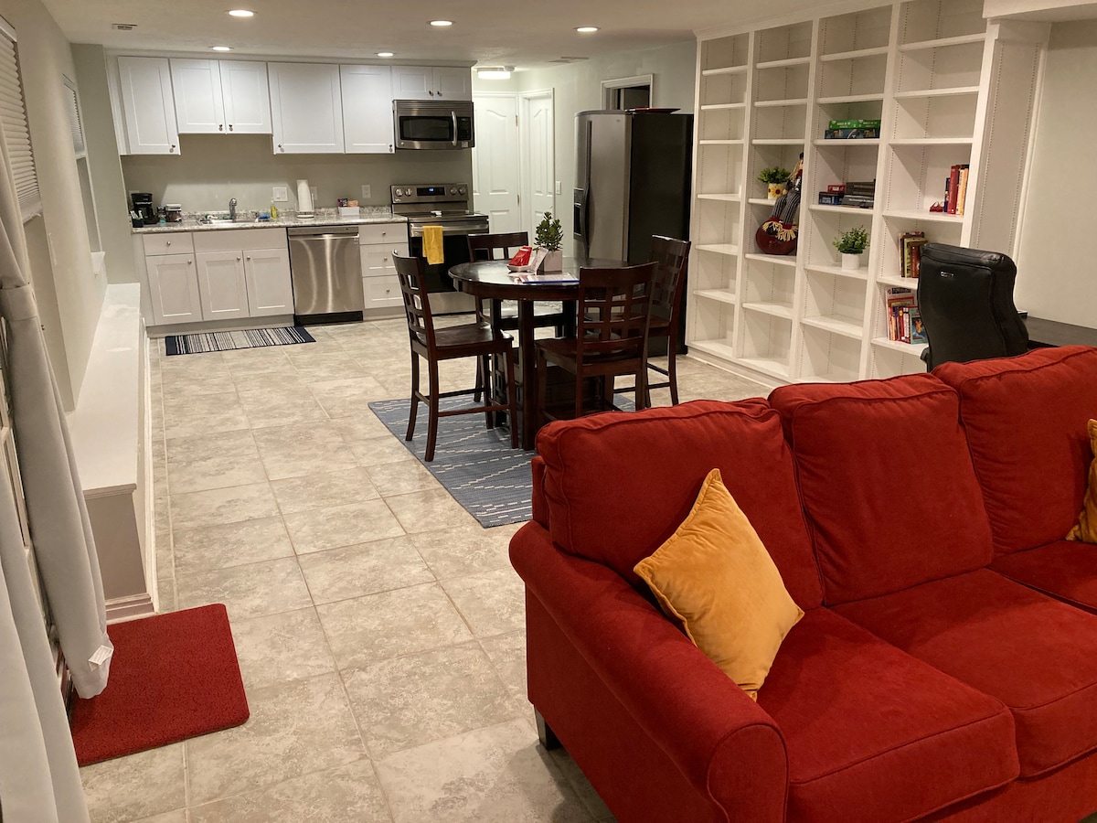 The entire lower level of the house is yours including a kitchen, great room, bedroom and full bath.