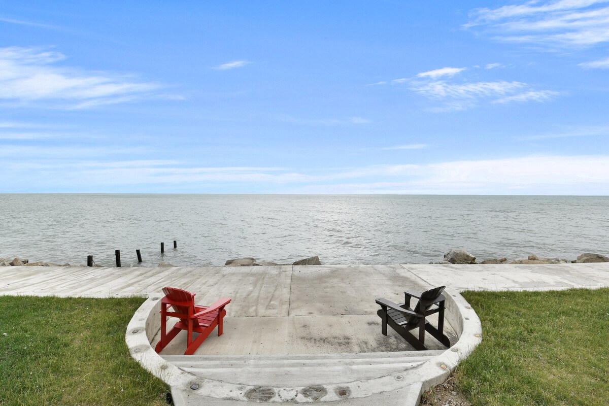 Escape with your family and friends to this private secluded, family fun, Lake House! This 3 bedroom, 2 full bath lake house sits directly on the north shores of the Lake Erie and features lake view from almost any part of the house..