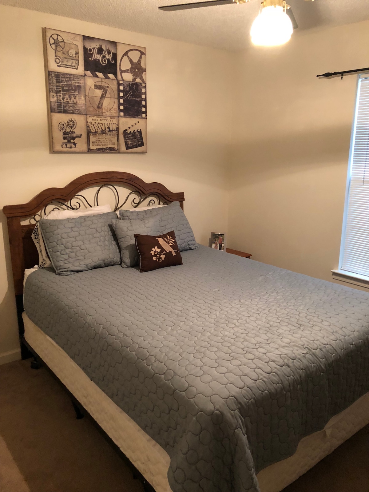 You will have the in-law quarters, with a queen size bed, full bathroom, and closet with a mini fridge in it. Bed linens, towels, shampoo and conditioner available. Blackout curtains. Nice quiet space.