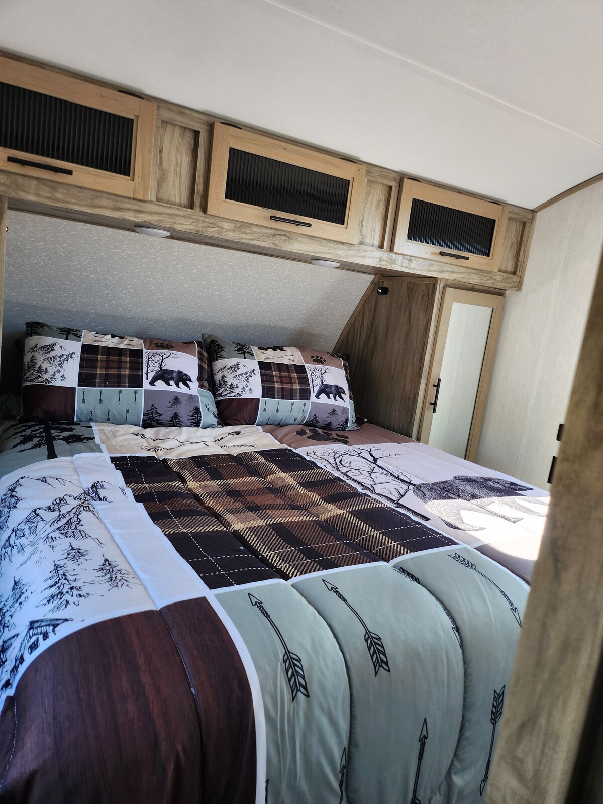 Only available May 1-Oct 1. This camper sits on our private residence 100 ft from main house. There is a driveway in between the main residence and the camper.