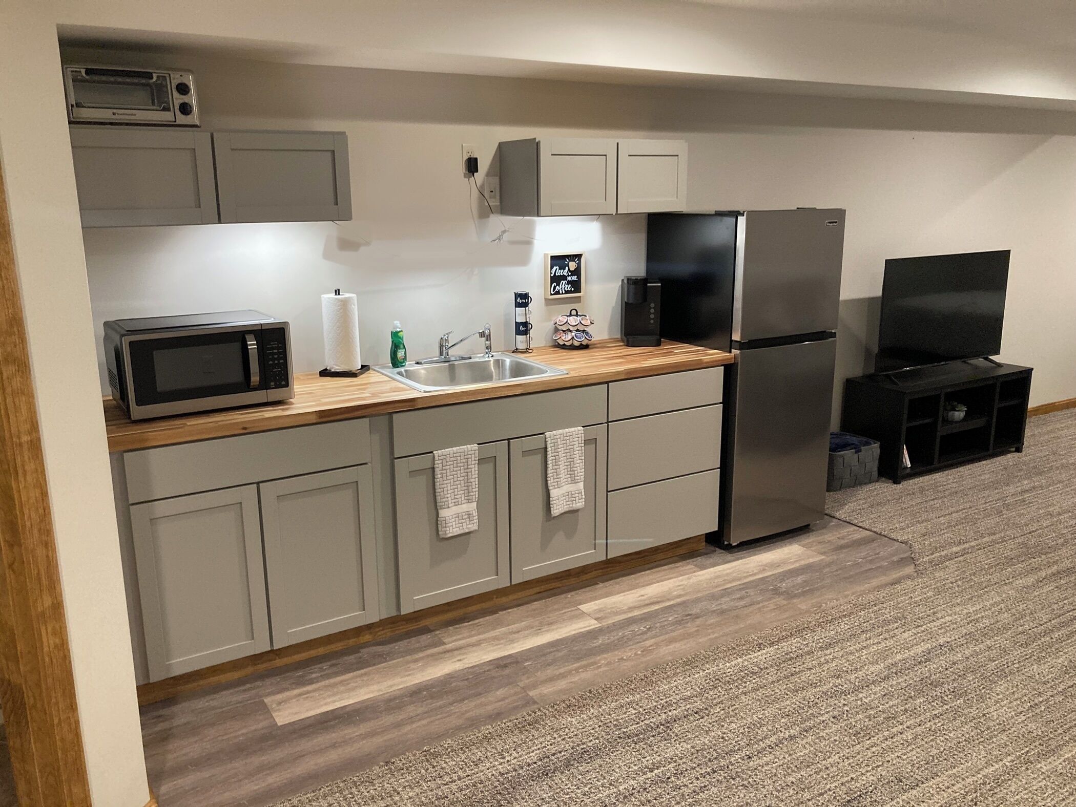 Bathroom: shower stall, sink, mirror/cabinet, toilet, washer and dryer. Towels and hand soap provided to guests. Toilet paper and laundry pods will be provided to start. For longer rentals, renters will be responsible for getting further toiletries.