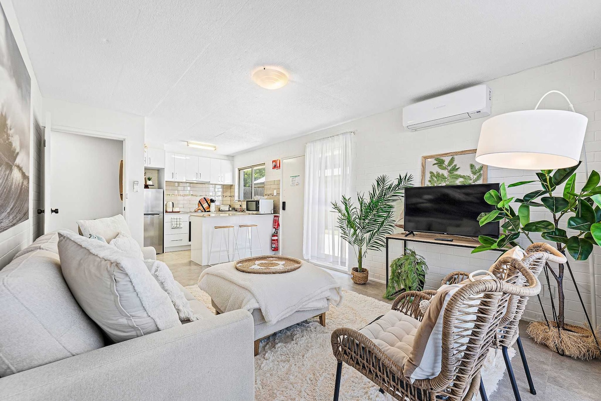 Living Area: Open-plan design with plenty of natural light, and stunning views, an electric fireplace for cozy evenings, and reverse cycle air conditioning to keep you comfortable year-round.