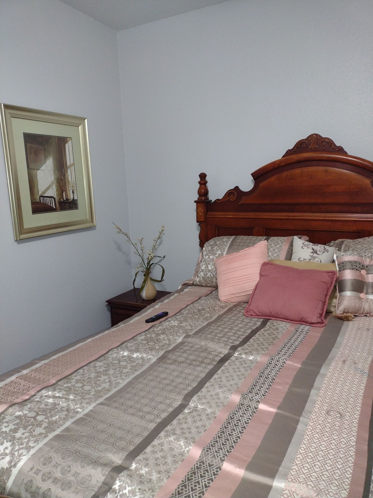 Cozy private room in nice neighborhood available for a minimum 3-night stay / discount applied for a 30-day stay. It has 1 queen size bed and shared bathroom. Just a few miles from most anywhere you'd like to shop as well as any kind of food you can imagine. I have friendly pets, a small terrier and 2 cats who share my home with me.