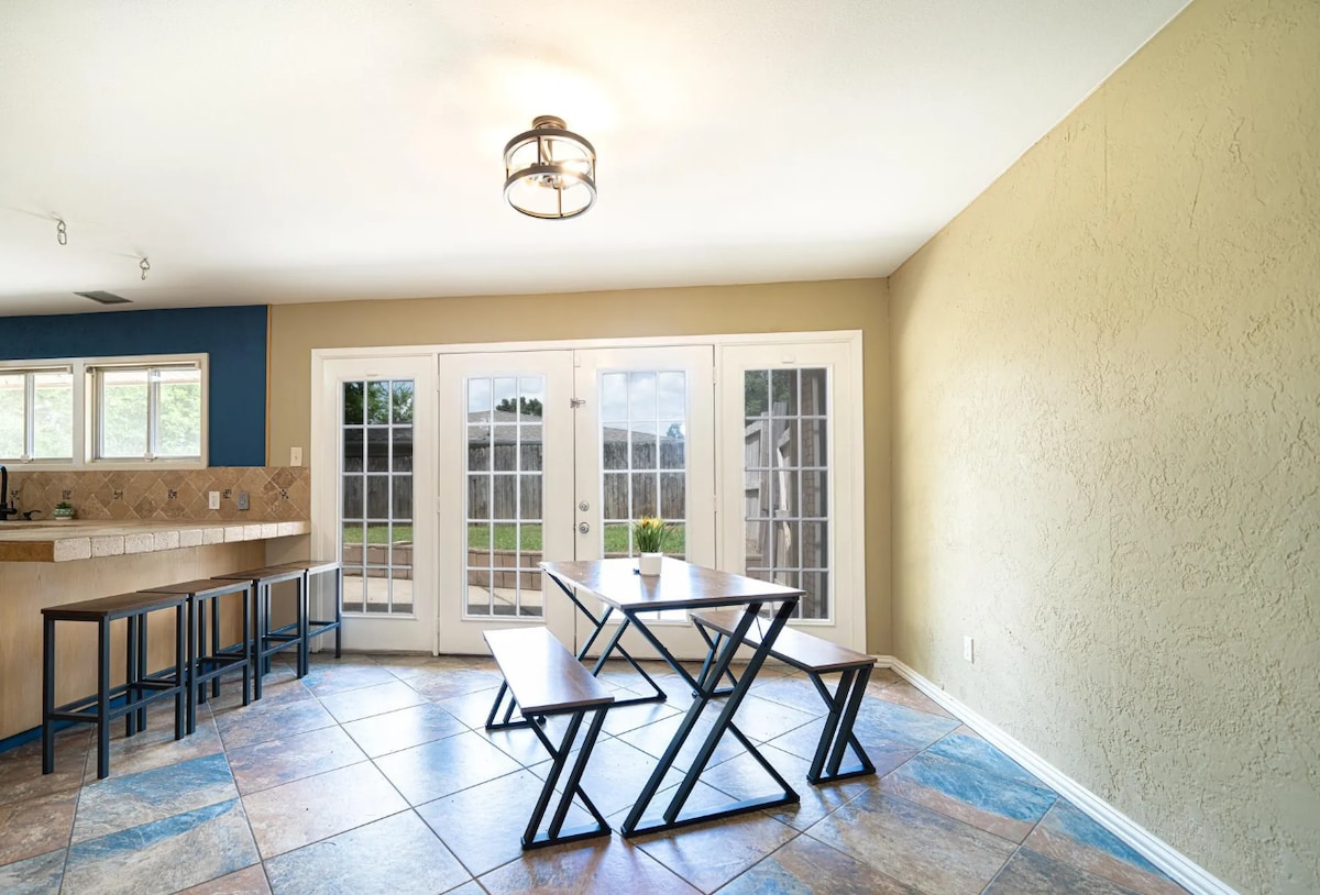 Experience Kilgore like a local in this 3-bedroom house. With 1 king bed, 2 queen beds, and 2 bunk beds, there's plenty of space for everyone to relax. Hometown Hideaway offers the perfect blend of small-town charm and country calm. Tucked just minutes from Main Street, this peaceful home gives you quick access to local diners, shops, and attractions-while still offering space to breathe. Whether you’re sipping coffee on the porch or unwinding inside with all the comforts of home, this space is designed for true relaxation. Great for couples, solo travelers, or families. It's easy to see why you'll be able to unwind at our place.