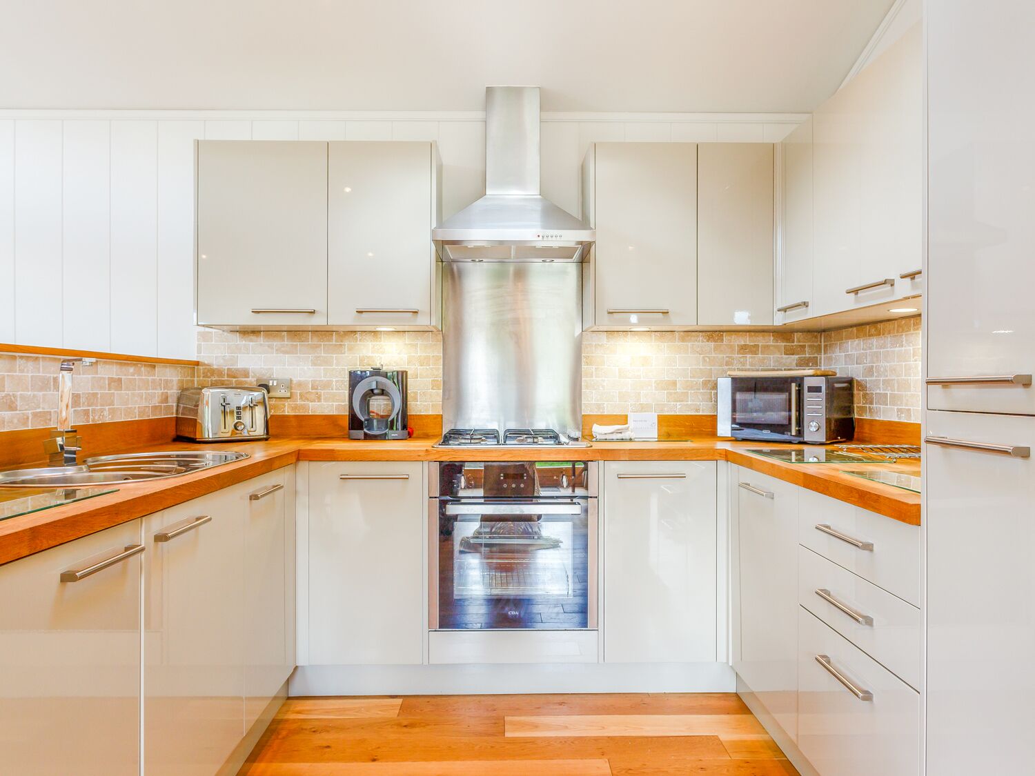 The galley style kitchen with stunning views, cooking will never feel like a chore. The apartment also benefits from a rear decked area with seating and your own coal BBQ, and access to our terraced garden.