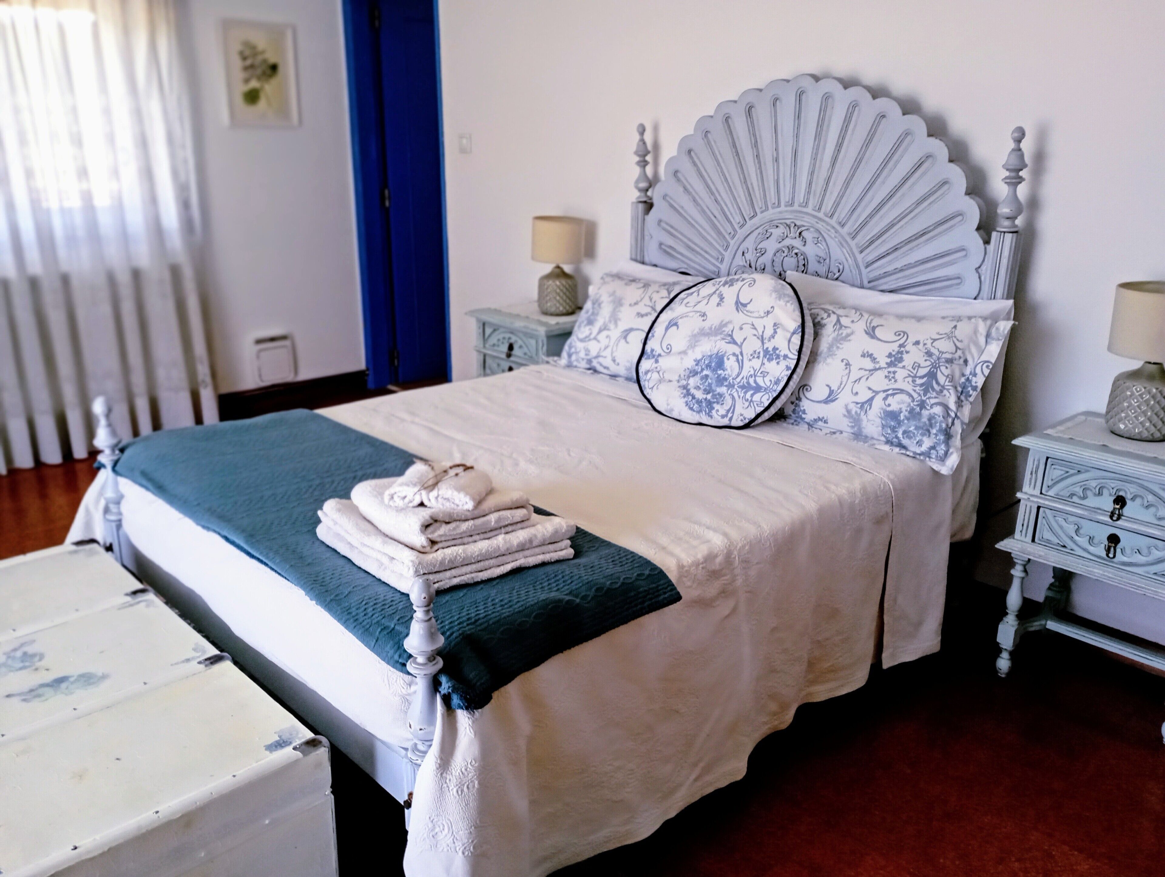 The apartment consists of 3 inter-connecting rooms; a stunning bathroom, decorated with a Portuguese feel due to the tiles and decor. This leads on to the beautiful bedroom, with antique furniture, lovingly restored and updated with chalk paint, and a big comfy double bed with a memory foam mattress.
