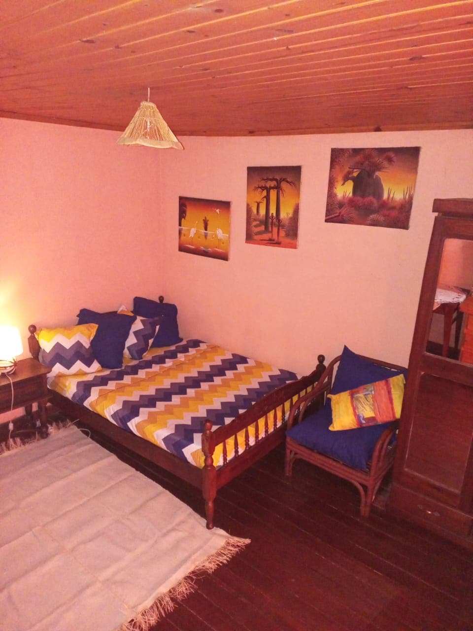 Misy: EQUIPPED KITCHEN, MICROWAVE, FRIDGE, DINING ROOM, HIGH CHAIR FOR BABY, 1 BUNK BED, 1 SINGLE BED, 1 MASTER BEDROOM WITH A DOUBLE BED, 1 LARGE WARDROBE, TOILET AND SHOWER INSIDE (ANTRANO) well, MISY TANY ASIANA TOMOBILY (parking) misy bajaj mafatoky for an extra fee, cleaning lady possible but at your expense (mpanasa lamba... etc). Neighborhood ANTANIFOTSY 2, suitable for children