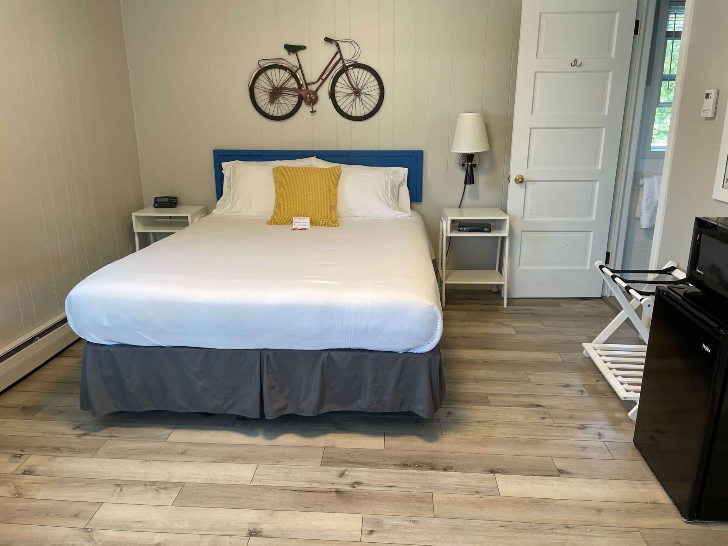 The Sunflower is a popular room with a comfortable full-size bed, large desk & chair, and plenty of storage space in the closet & dresser.
