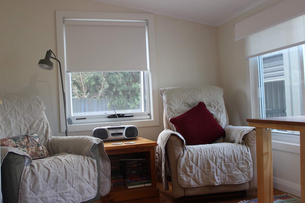 Relax at this peaceful place to stay. A nice clean and modern place to relax. Step free entry. new open bathroom. wheelchair accessible. modern double bed and king single bed. views looking over park. private courtyard with BBQ