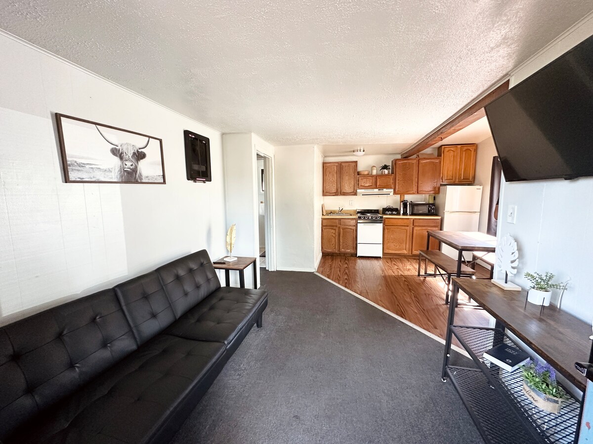 It includes a bedroom, living room with futon, and a full kitchen—great for couples or small groups. Enjoy Wi-Fi, self-check-in, and free parking. We're dog-friendly and just minutes from Garden of the Gods, hiking, fishing, and downtown shops.