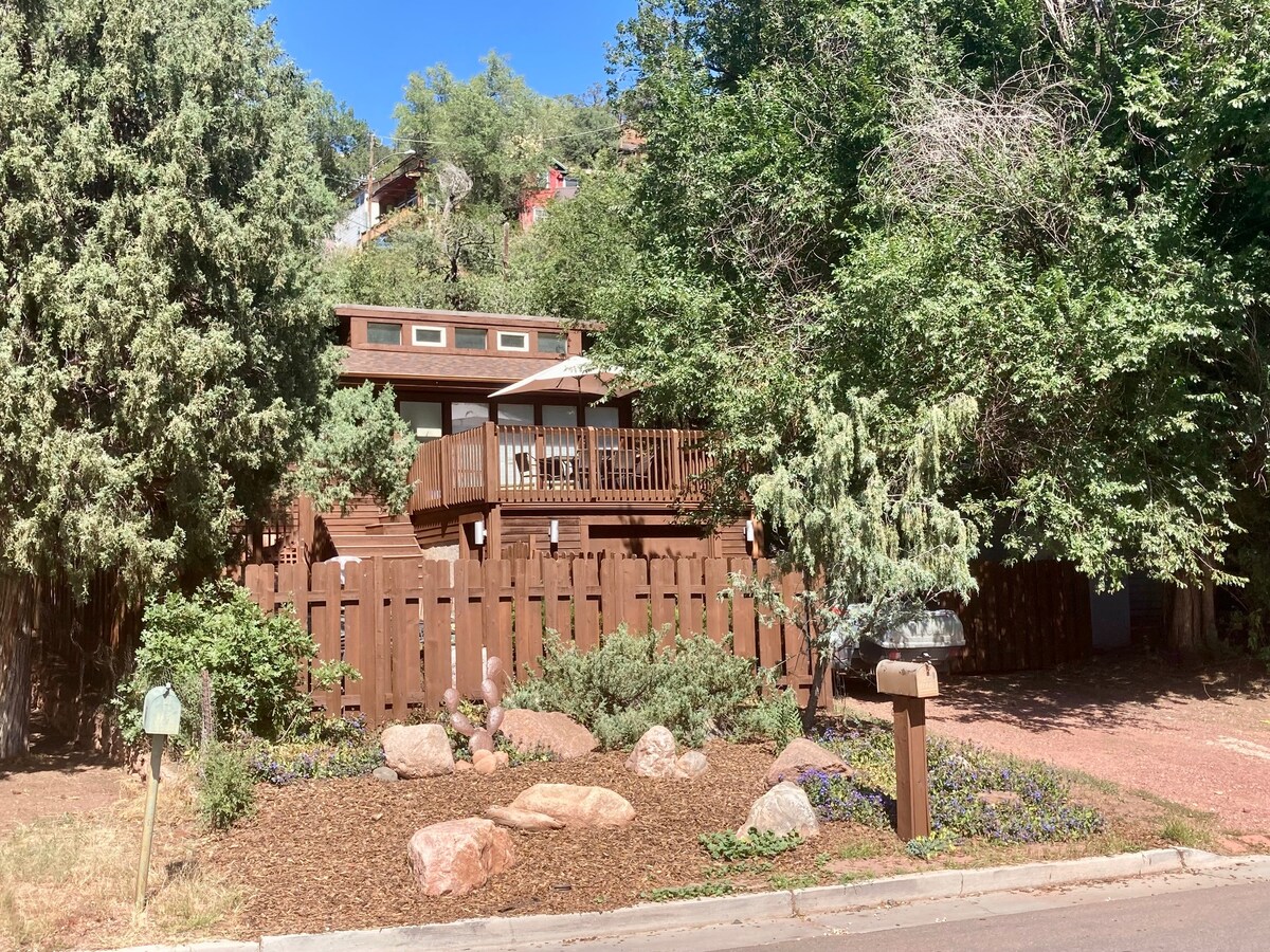 Right downtown Manitou Springs, CO (literally on the main block). Steps from all the shops, bars, cafes, arcade, water springs. 10m walk to Incline and Barr Trailhead (Pikes Peak), 5m drive to Garden of the Gods.