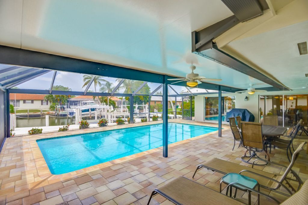 The beautiful patio and pool deck is furnished with a table, sofas, and chairs, making it the ideal setting for entertaining guests or gathering with the family as you sit back and enjoy the view of the tranquil waterway. And the western exposure means every night you’ll be treated to a spectacular Marco Island sunset.
