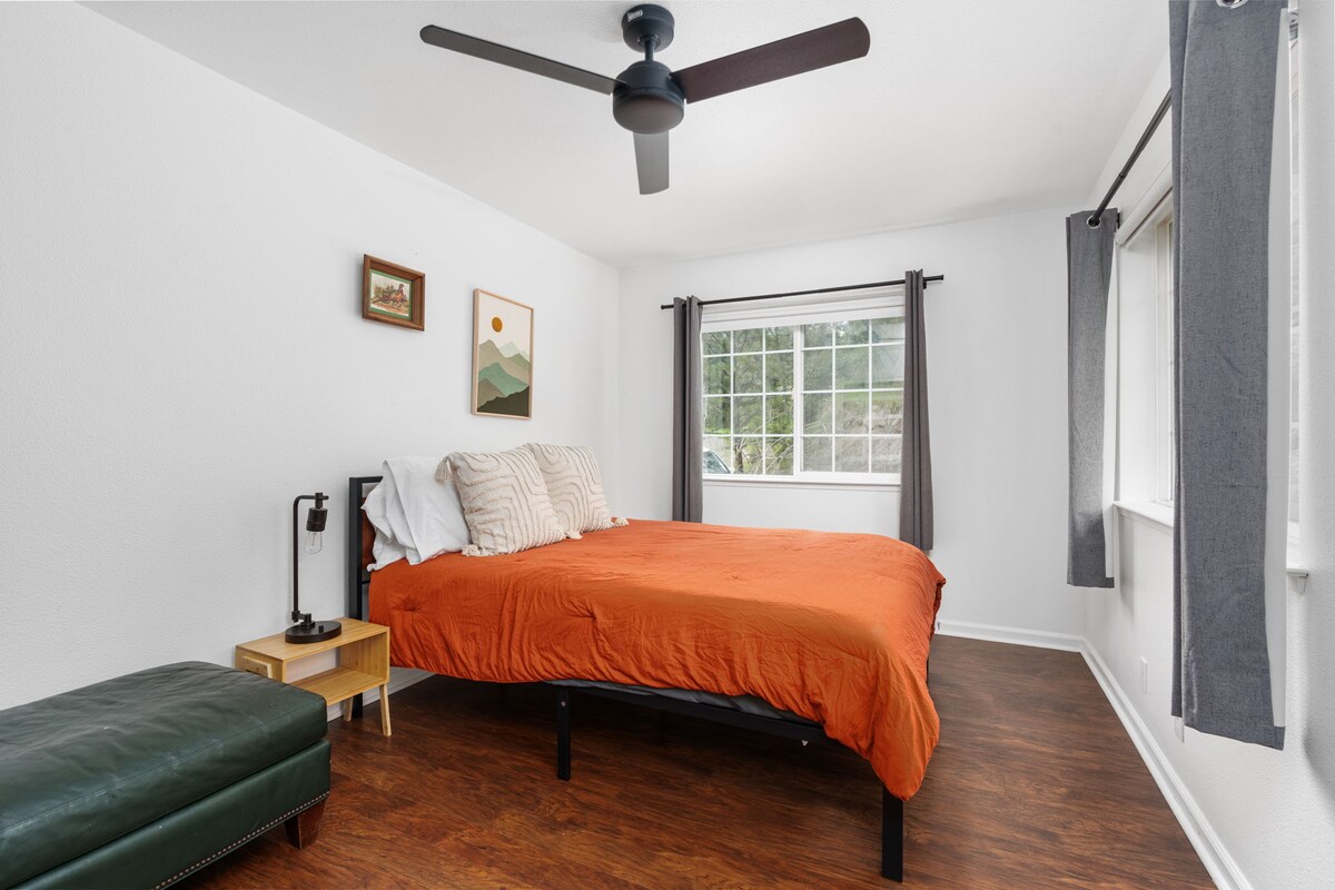 Mariposa is waiting for you at this enchanting 2-bedroom house. Nestled amongst the pines, this peaceful retreat offers a wonderful escape for guests. No pets are allowed to accommodate anyone with allergies. You'll feel right at home with two queen beds, a cozy living area, and a fully equipped kitchen. Take advantage of the modern amenities such as the washing machine, AC, and excellent WiFi. Refresh yourself in the inviting bathroom with rejuvenating double shower heads. Whether exploring nearby attractions or simply unwinding on the front porch, this enchanting house provides the perfect base for your Mariposa adventure.