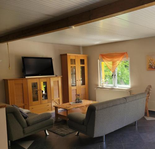 This charming vacation home on the outskirts of the village invites you to relax. Enjoy the wide view over fields and meadows directly from the living and dining area – with a little luck, deer can even be observed. If you love peace and nature, this is the place to be.