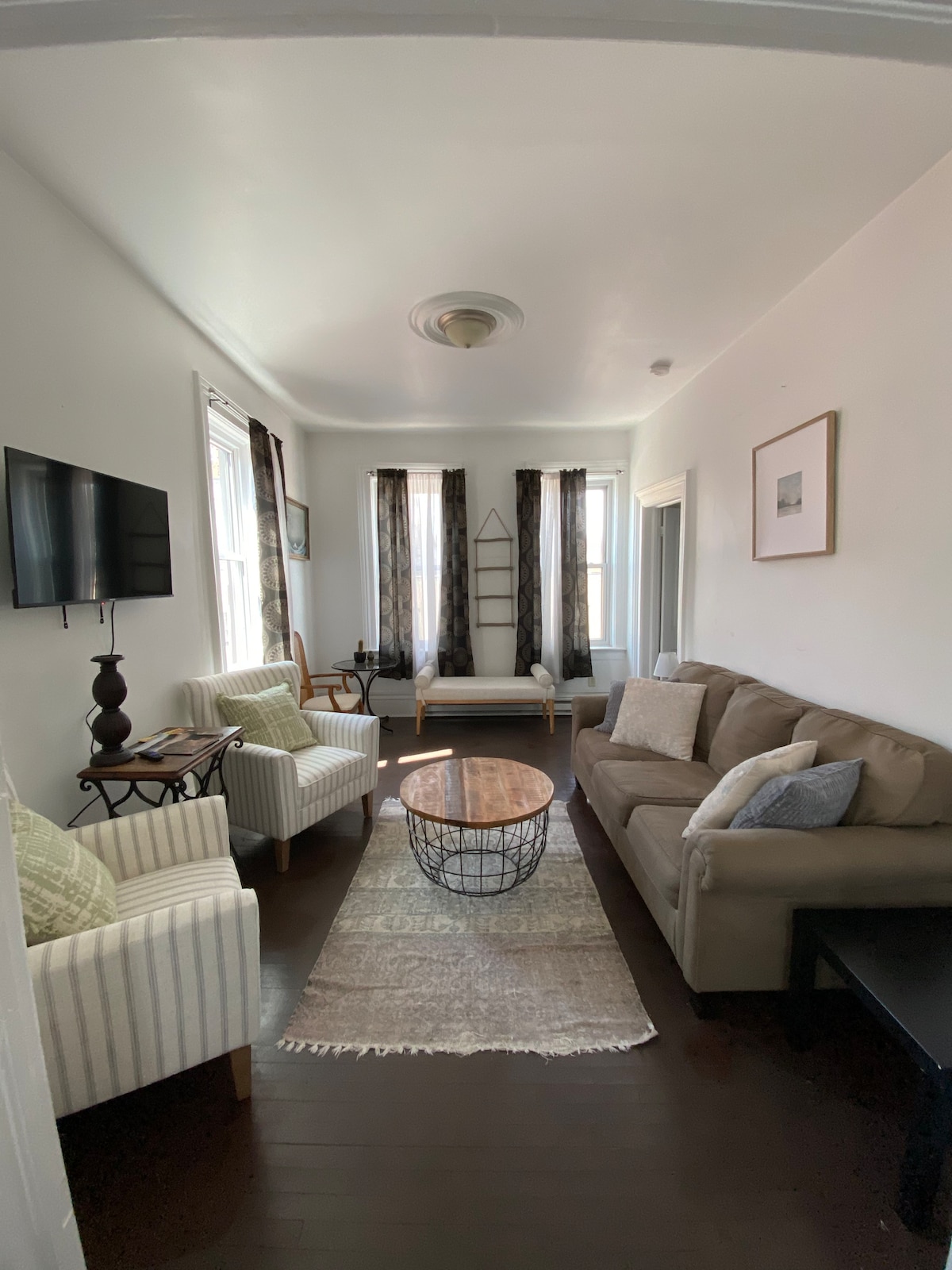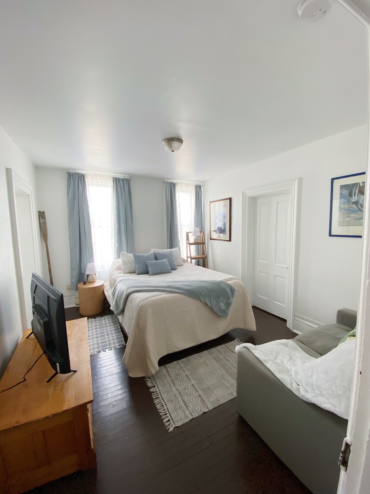 Newly renovated in 2019, this two bedroom suite has a living room, full bathroom, and sleeping accommodations for up to 6 guests. This suite is one out of four rentable units above the cafe, which makes it perfect for larger groups!