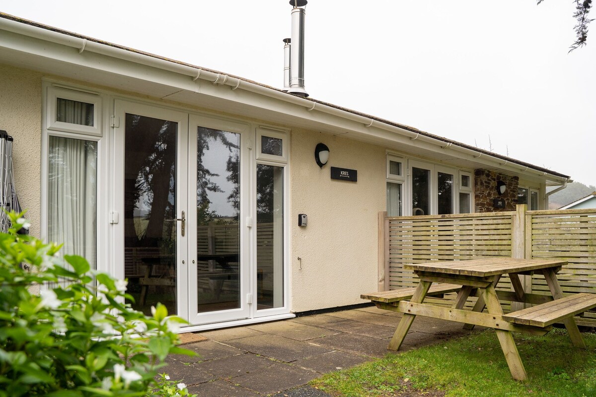 Inside, you'll find an open-plan kitchen, living, and dining area complete with a cosy log-burning stove and flat screen TV. The kitchen is fully equipped with an oven, hob, fridge freezer and microwave. The cottage offers a master bedroom with a double bed and TV, alongside a second bedroom with twin beds and a family bathroom with a shower over the bath. Plus, Kres Cottage is dog-friendly, so your furry friends can join the fun.