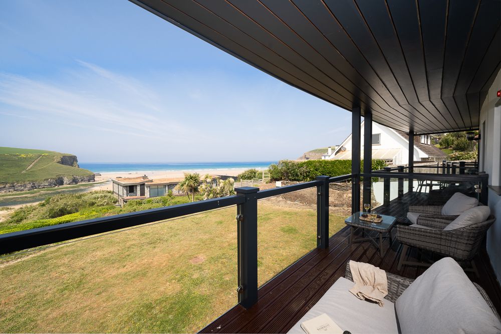Our beach-side hideaway has breathtaking views over the stunning sandy beach of Mawgan Porth on the North Cornwall Coast. The modern south facing two bedroom apartment has a large open plan living area which opens out on to the terrace and communal lawn overlooking the beach.