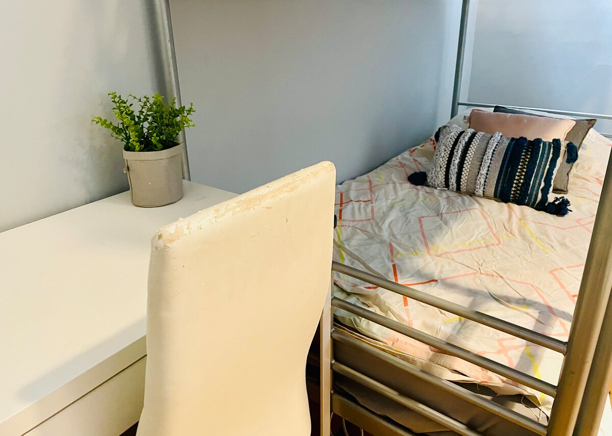 You’ll have access to the kitchen, with your own food storage, and space in the fridge and freezer. Additionally, the lounge room with access to Stan, Prime, Disney+. There is laundry facilities available, but to keep costs low it comes at an additional charge ($3 per wash and $3 per dryer use). There is a balcony with a seated outdoor setting and views to the reserve.