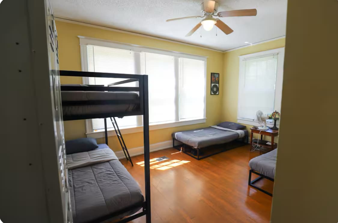 Please note that this listing is NOT for a private room. It is for one twin sized bed in our sun room i.e. a shared room. **This area is the open area behind the fireplace in the living room.** The dorm room, which is co-ed accommodates 2 in total (i.e. 1 bunk bed). Dorm Bed 6 is a BOTTOM bunk bed. Each reservation for Bunk 6 can only be made for 1 guest (i.e. Bunk 6 accommodates only ONE guest). The other bed in this sunroom is listed individually as Dorm Bed 5 (top of Bunk 3 in sunroom). ***In addition to the shared sunroom (shared because there is a wall with two openings on either side to the living room, not offering 100% privacy, our residence contains 5 private rooms which hold a maximum of 2 guests each and an additional dorm room that has 2 more bunkbeds. The other shared spaces in our residence include 1 bathroom (2 bathrooms total in house), a kitchen, laundry area, and a living area.