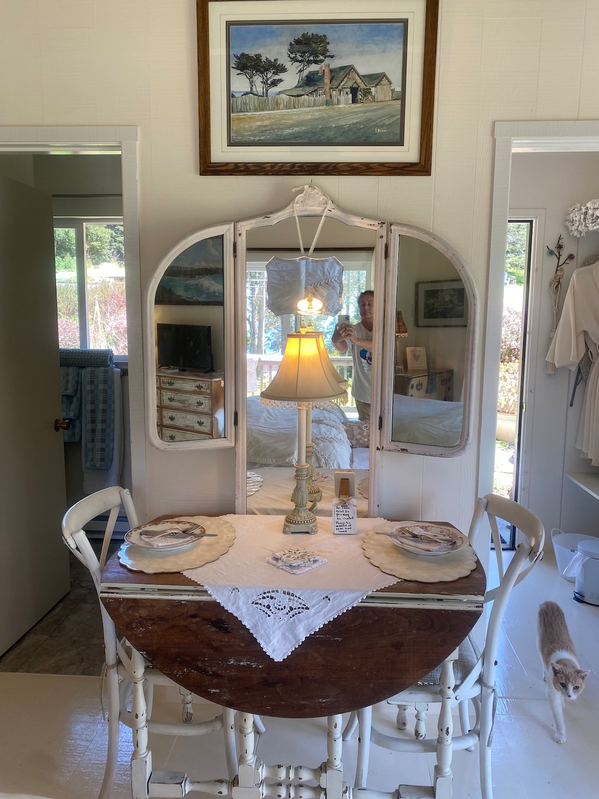 Enjoy the views and wildlife while sipping wine or enjoying morning coffee. Quite and spacious. Romantic vintage decor. All art in this room is original and painted by local artists