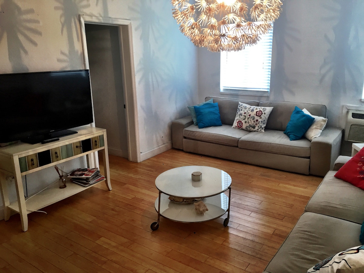 Light decor and plenty of windows with views of the park just before the gorgeous beach. One bedroom full apartment.