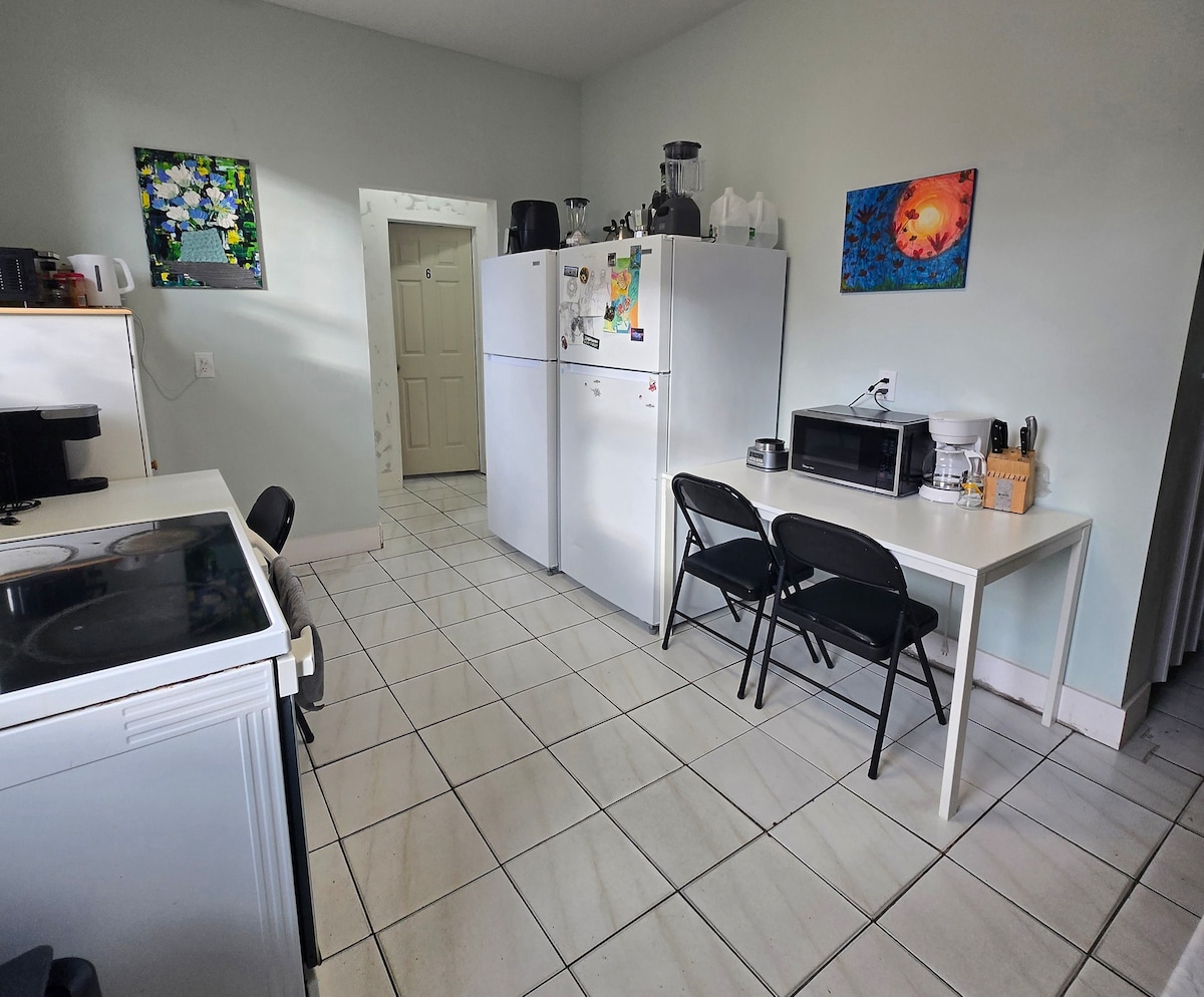 All kitchen appliances are in the kitchen, no additional appliances allowed in the rooms.