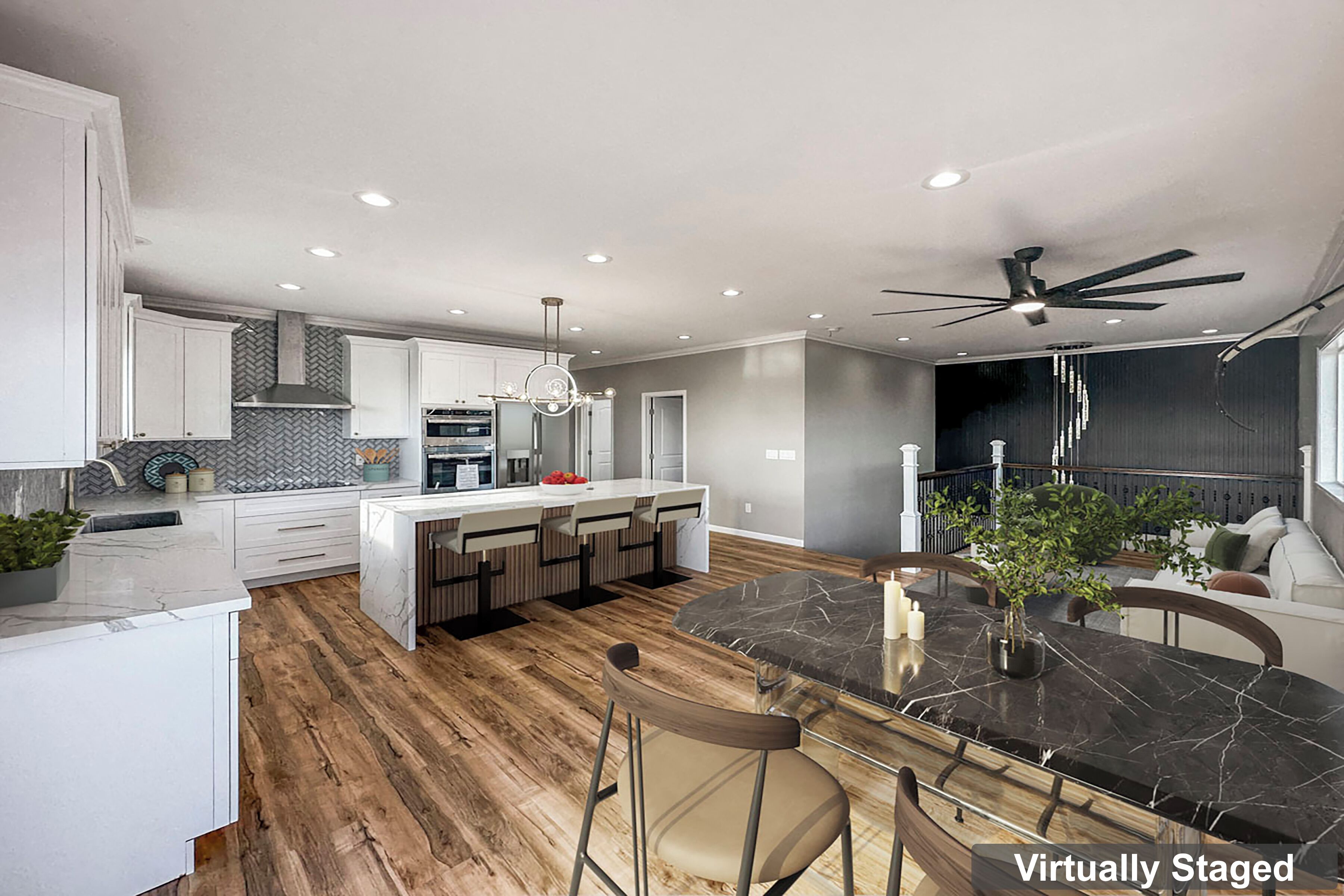 The fully equipped kitchen has granite countertops and updated appliances including a dishwasher, stove, refrigerator, microware, blender, Kuerig, 12-cup coffeemaker and Instapot. It also has a large farmhouse table, highchair, and a backyard BBQ.