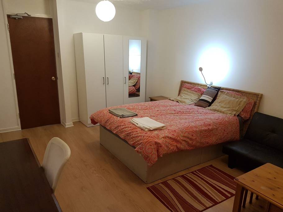 This is a newly refurbished property close to Milton Keynes City Center. It is a light and bright large double room and has new decoration. It is furnished with a comfortable double bed , a sofa bed, 3 door wardrobe, chest of drawers, work space with desk and chair.